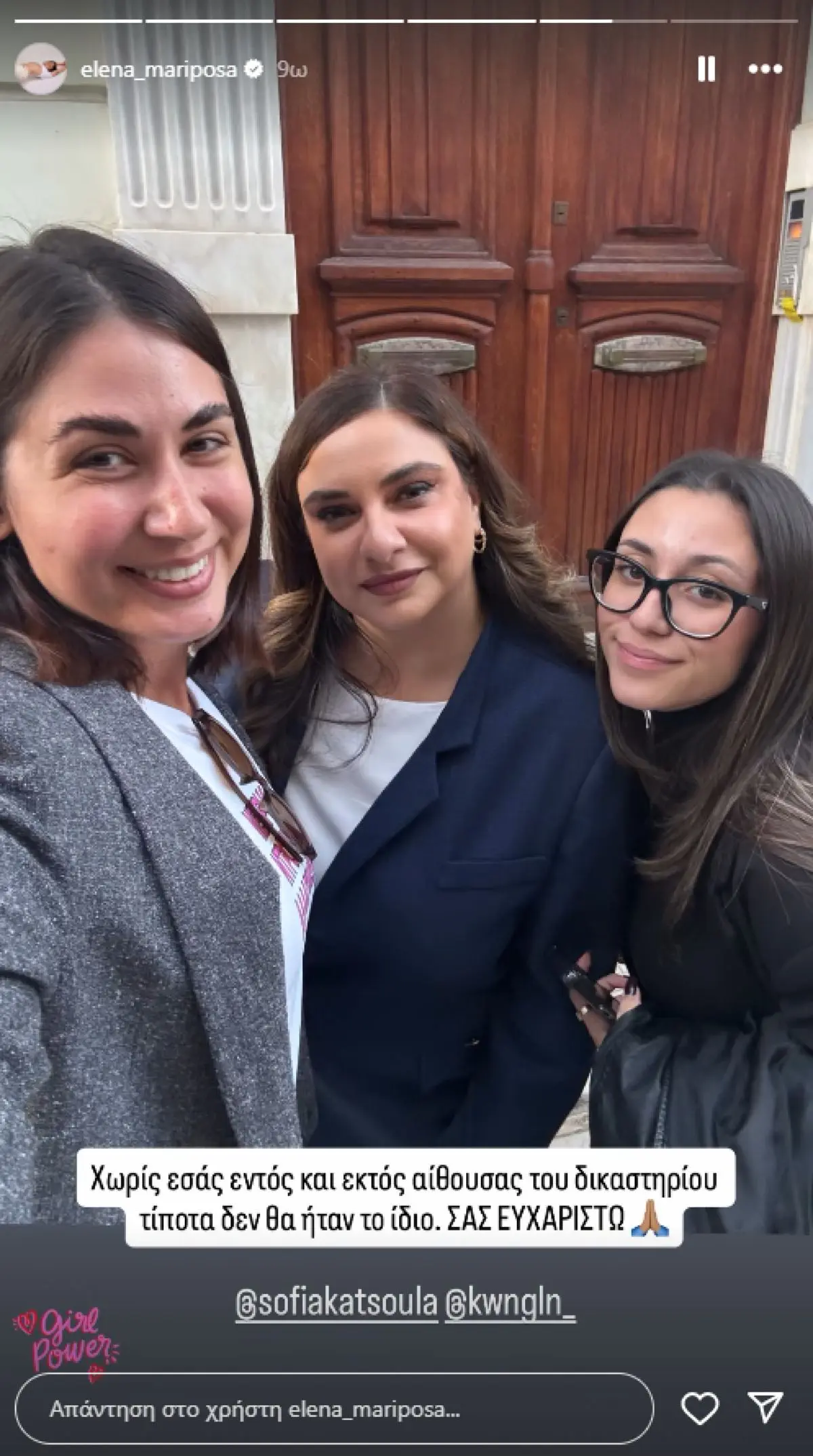 Στη συνέχεια, δημοσίευσε και μία φωτογραφία με τις δικηγόρους της και πρόσθεσε: «Χωρίς εσάς εντός και εκτός αίθουσας του δικαστηρίου, τίποτα δεν θα ήταν το ίδιο. Σας ευχαριστώ».