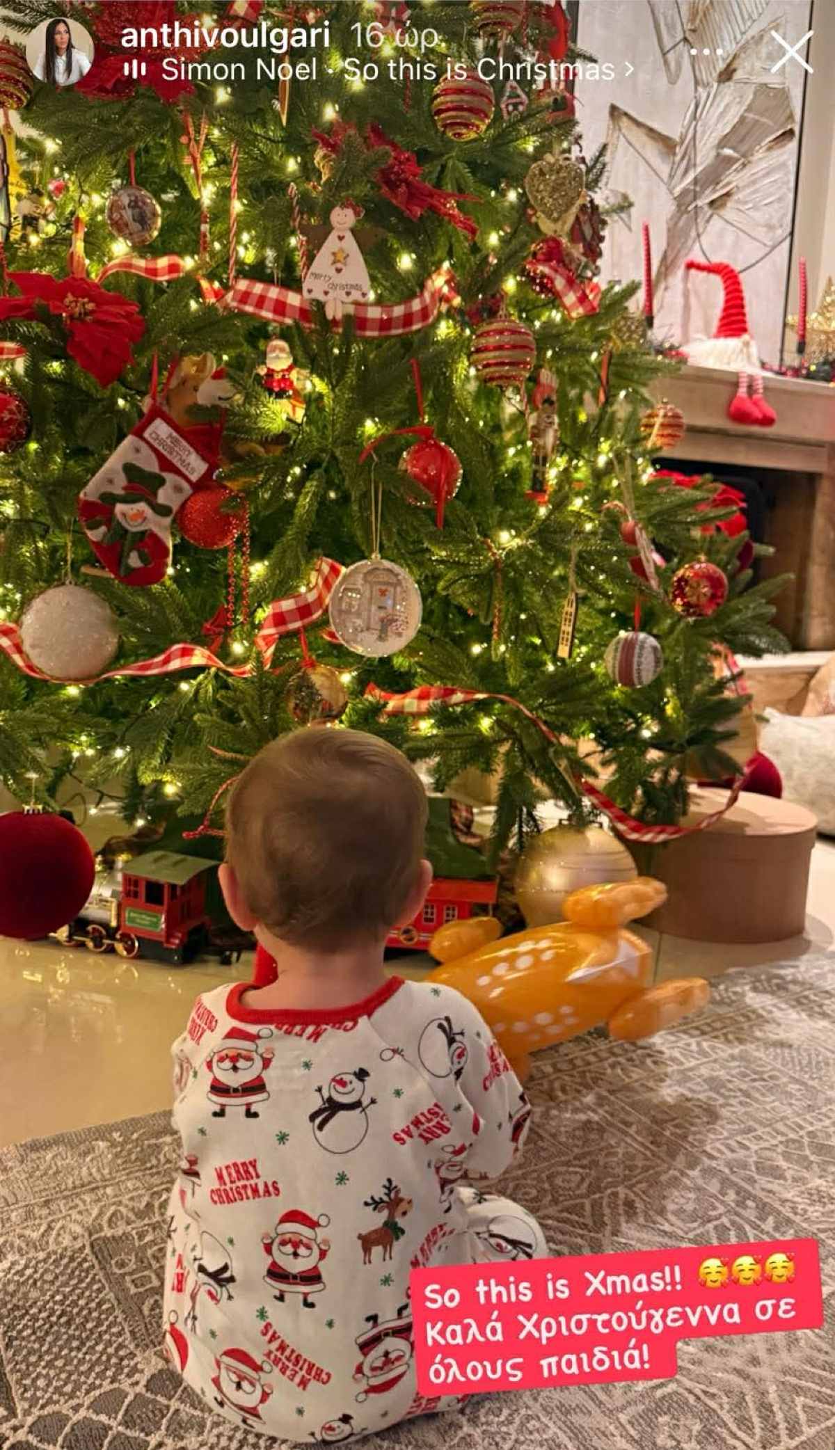 Στην φωτογραφία, ο γιος της Ανθής Βούλγαρη ποζάρει μπροστά από το χριστουγεννιάτικο δέντρο, με την παρουσιάστρια να γράφει χαρακτηριστικά: «Αυτά είναι Χριστούγεννα, καλά Χριστούγεννα σε όλους παιδιά!».