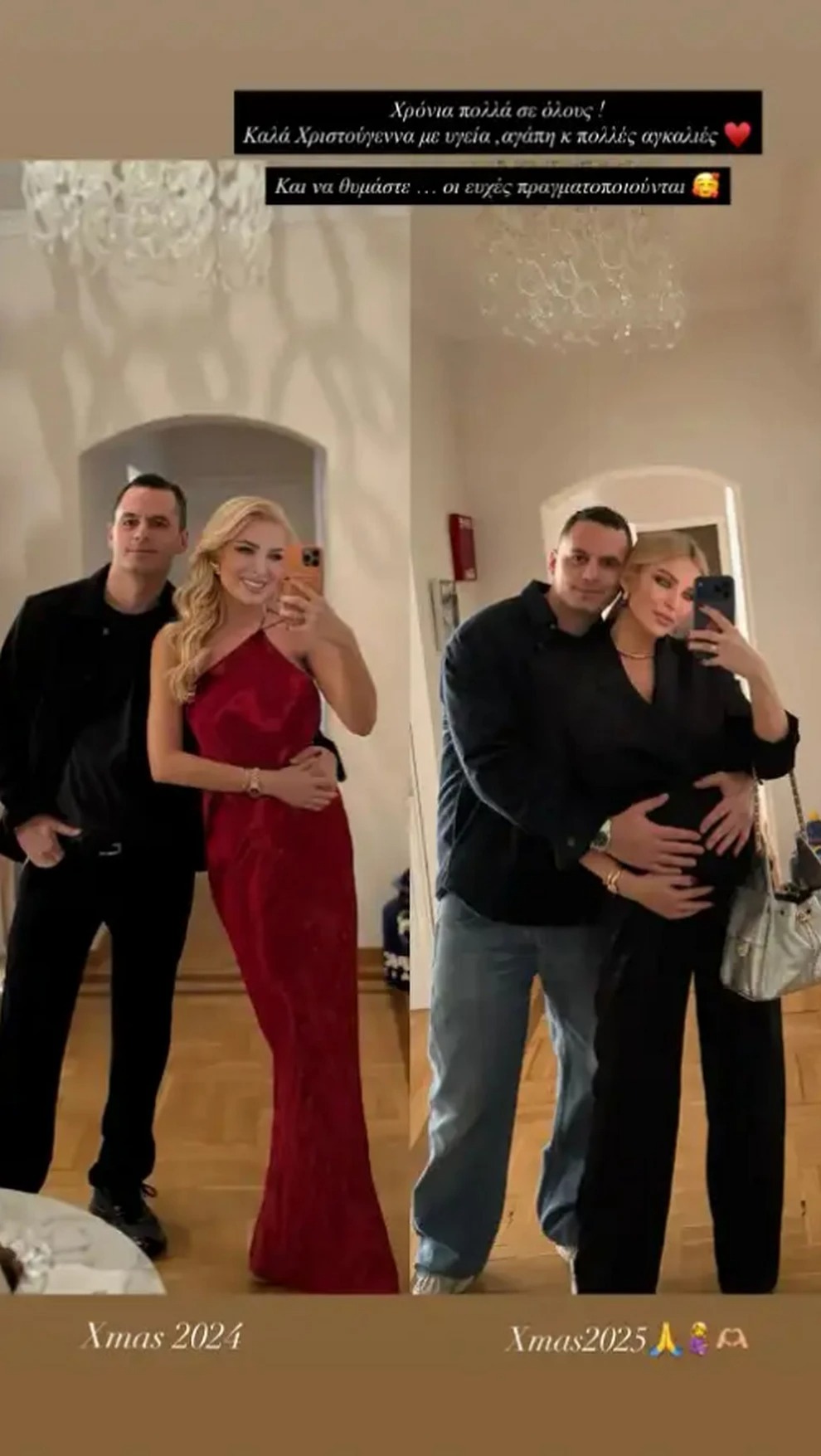Το ζευγάρι πέρασε μαζί τα Χριστούγεννα και θέλησε να μοιραστεί μια τρυφερή στιγμή με τους διαδικτυακούς τους φίλους. Συγκεκριμένα, φωτογραφήθηκαν με τον ίδιο τρόπο που το είχαν κάνει και πέρυσι, με τη διαφορά ότι φέτος η Κατερίνα είναι έγκυος.