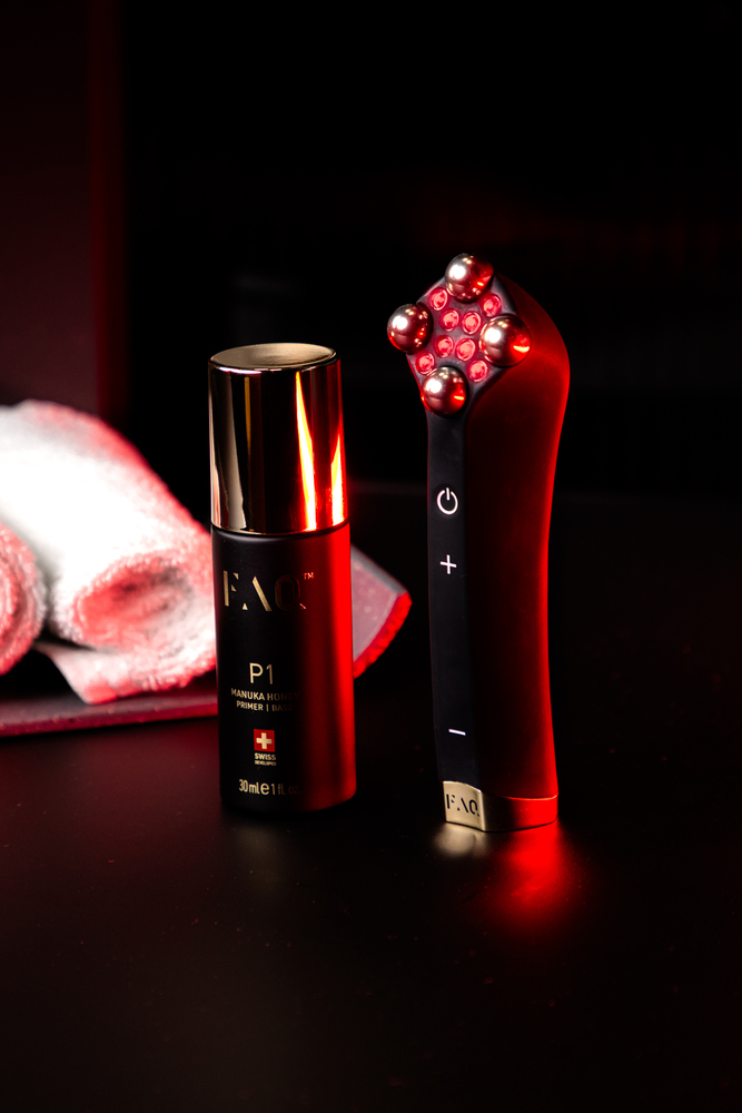 Το FAQ™ 502 είναι η πρώτη στο είδος της προηγμένη συσκευή θεραπείας με κόκκινο φως που εκπέμπει παλμικό φως ευρέος φάσματος με στοχευμένα μήκη κύματος κόκκινου + NIR, μιμούμενη τα αναζωογονητικά οφέλη του ηλιακού φωτός χωρίς τις βλαβερές ακτίνες UV. Όταν συνδυάζεται με τον ιδανικό σύντροφό του, το FAQ™ Red Light Peptide Serum, βοηθά στην ορατή βελτίωση της υφής, στην καταπράυνση της ερυθρότητας του δέρματος, στην ομοιομορφία της χρώσης και στη μείωση της εμφάνισης κηλίδων, λεπτών γραμμών και ουλών. Εμπλουτισμένο με πεπτίδια που ενισχύουν το κολλαγόνο, φωτεινό Sea Daffodil, ενυδατικό υαλουρονικό οξύ, καταπραϋντικό πράσινο τσάι και επανορθωτικό Cica.