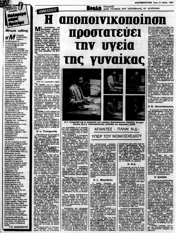 Μέχρι τότε, όλα κινούνταν στο σκοτάδι. Παράνομες επεμβάσεις. Κίνδυνοι για την υγεία. Σιωπή. Φόβος. Γυναίκες που πλήρωναν με τη ζωή τους την έλλειψη θεσμικής προστασίας. Το 1986 γράφτηκε ιστορία γιατί έβαλε τέλος σε αυτή την υποκρισία.